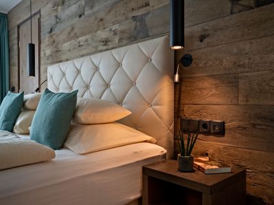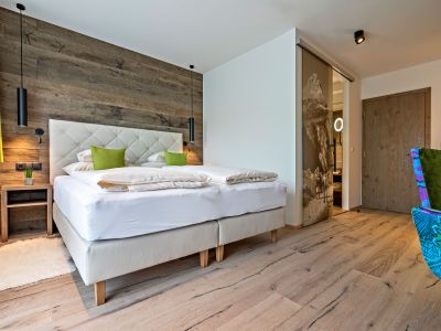• Top modernes Doppelzimmer mit Boxspringbett und herrlichem Bergblick (teilweise Südbalkon)